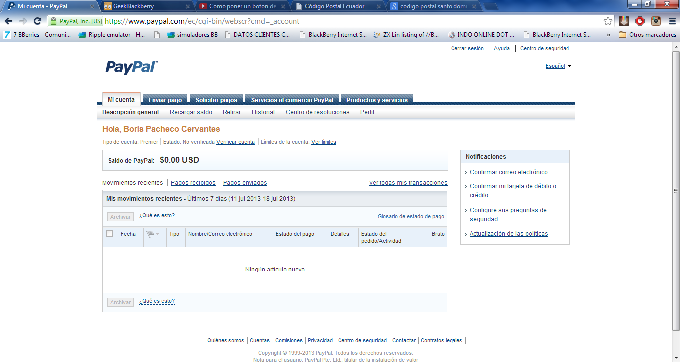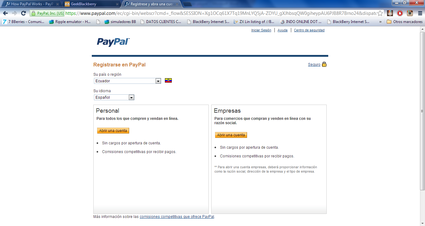 Como crear una cuenta en PayPal y vincularla con nuestra BlackBerry ID, para que compres en la Tienda BlackBerry World. (SIN TARJETA DE CRÉDITO - ECUADOR)